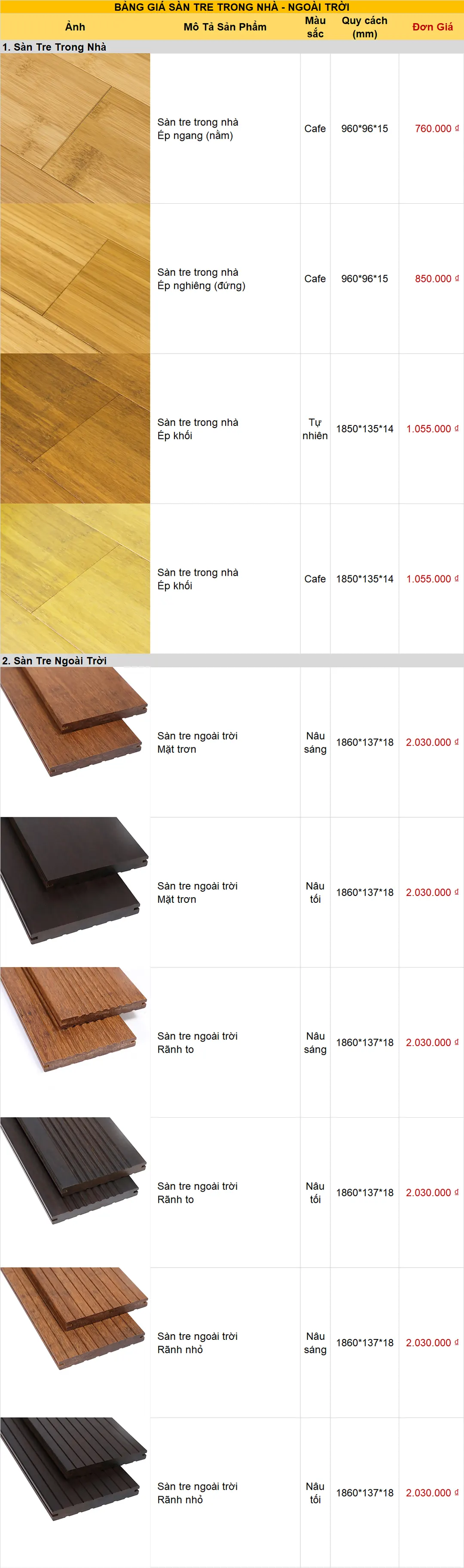 Hiện nay trên thị trường có 3 loại là: tre ép khối, tre ép ngang và tre ép nghiêng.